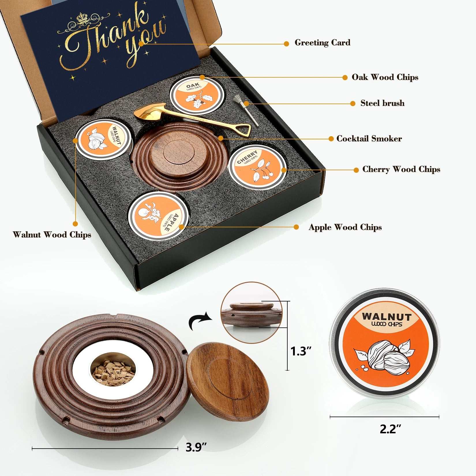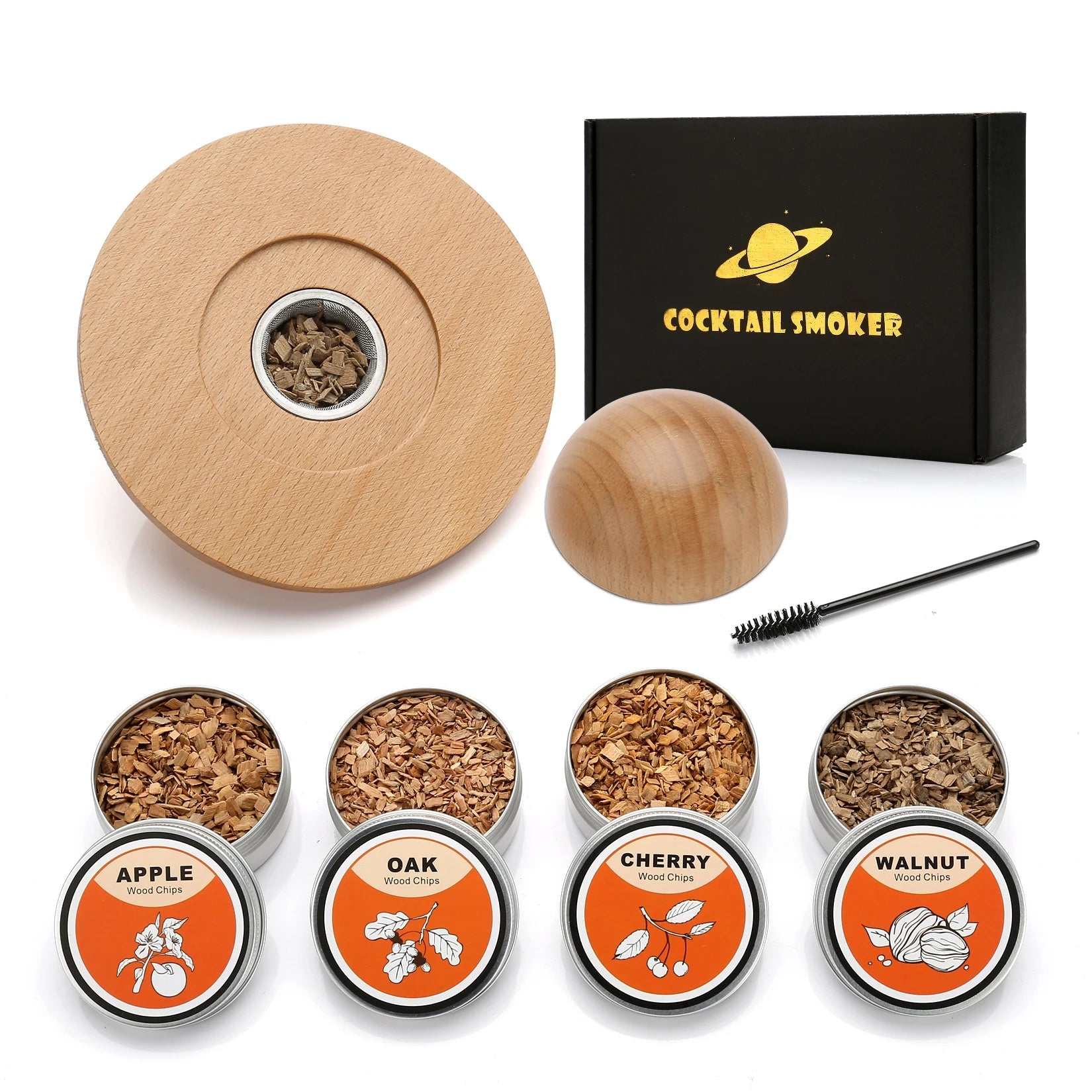 Cocktail Smoker Kit Premium Quality:Walnut Beech,4 Wood Chip Flavors