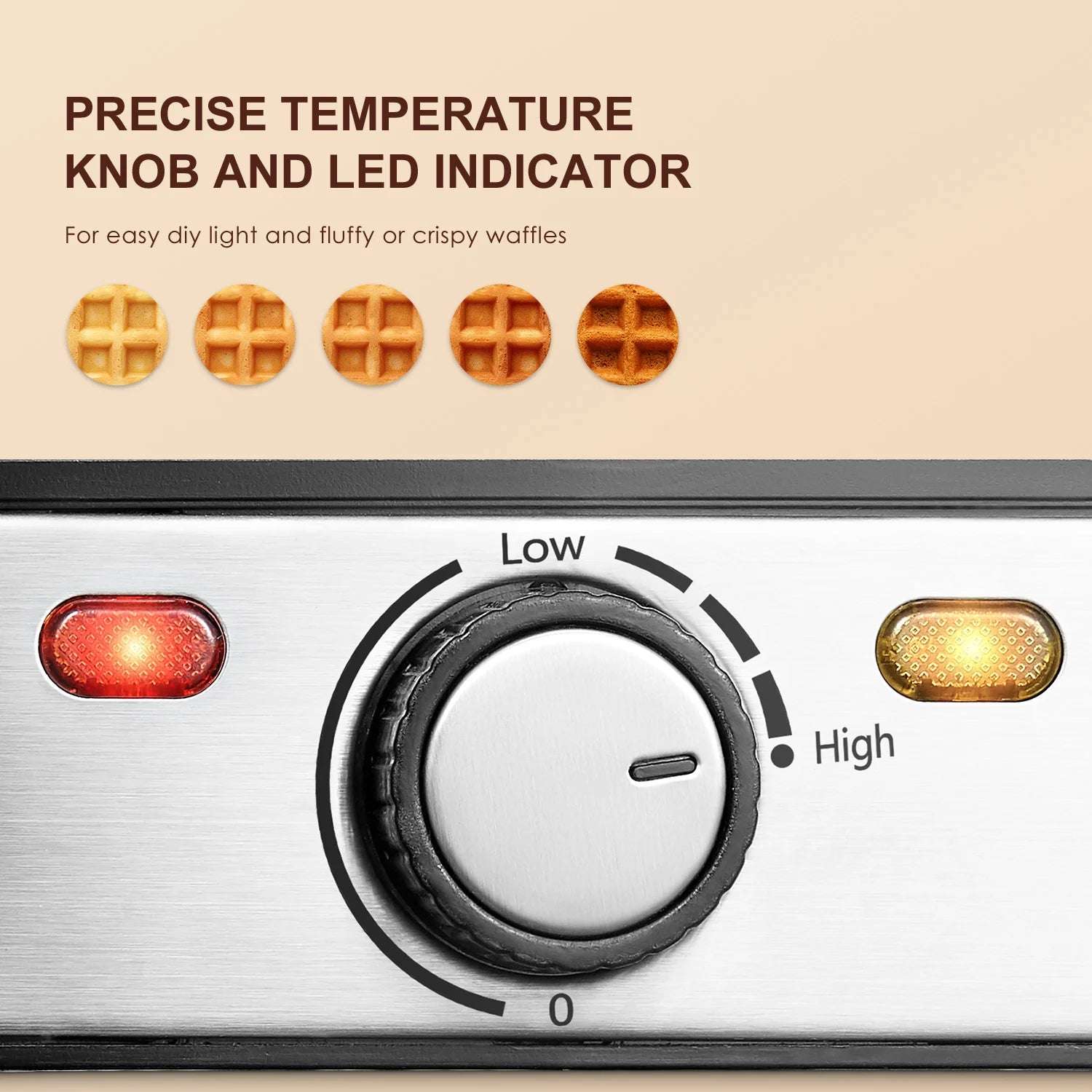 • 3 Browning Levels: 🔥 Choose from three browning levels to achieve your preferred waffle crispiness and color.