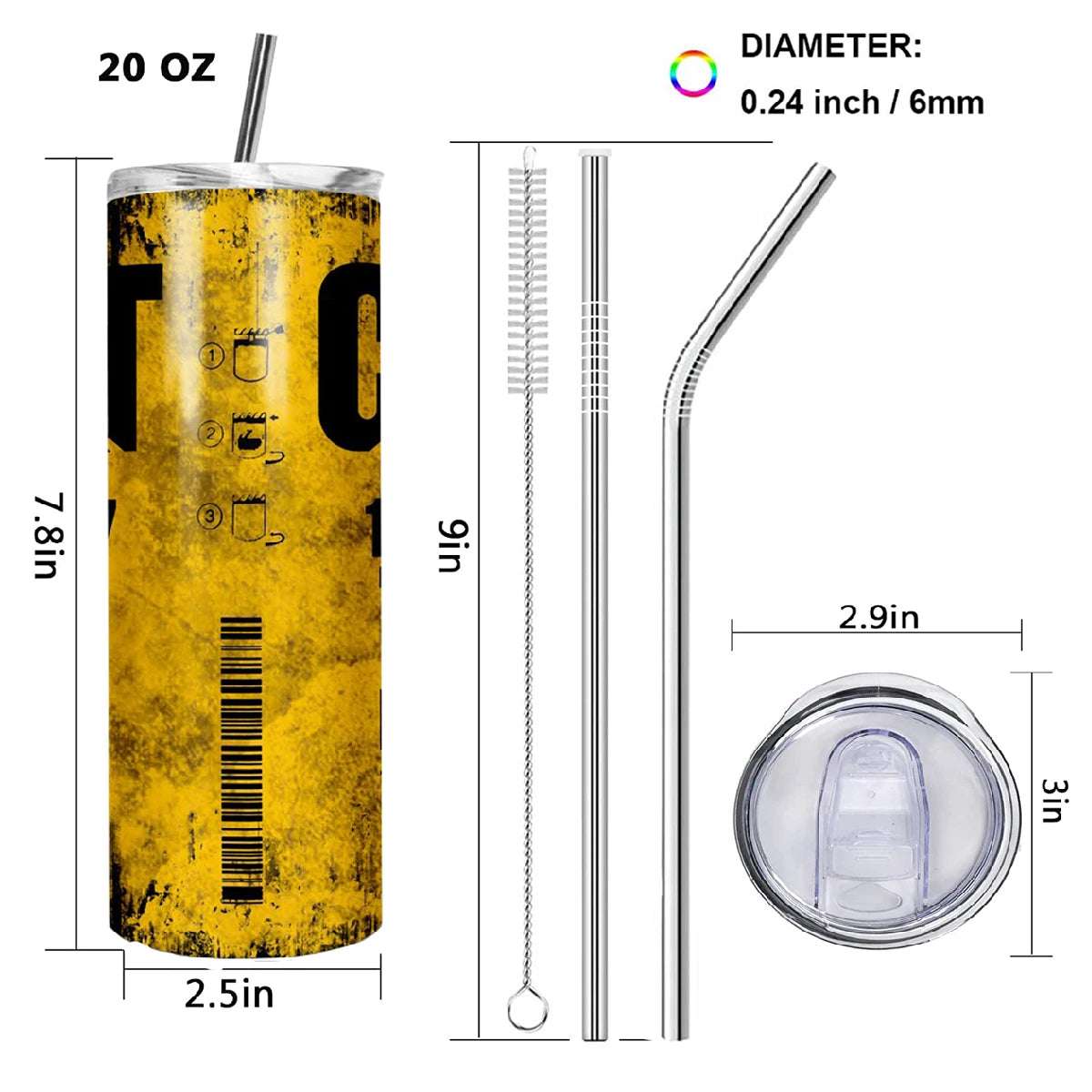 Keep your beverages at the perfect temperature for hours with our 20oz Eco-Friendly Stainless Steel Vacuum Flask. Featuring a sleek, straight-cup design and an eye-catching yellow grunge oil style, this double-insulated tumbler is ideal for men on the go. Whether you're working on a mechanic project or enjoying a coffee break, the superior thermal insulation keeps drinks hot or cold for 6-12 hours.